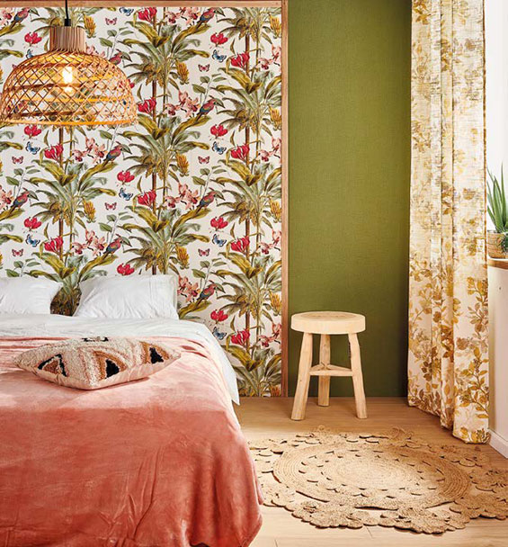 “In de slaapkamer is het belangrijk om het mantra van Paradise Island extra goed in het achterhoofd te houden: ‘niets moet, alles kan.’ Leg een knappe houtvloer, gebruik je geüpcyclede houten krukjes als nachtkastjes, hang enkele leuke botanische of bohemientekeningen en een rotan spiegel aan de muur, gebruik een oude ladder als kledingrekje en belaad je bed met kussens, dekens en lakens in verschillende zand- en aardetinten”, zegt de Brico-styliste. “Je eigen slaapparadijs maak je zelf. En wie droomt er nu niet beter in een leuk ingerichte slaapkamer?”